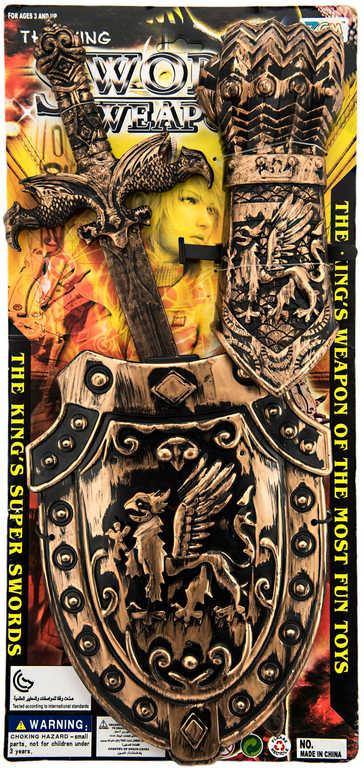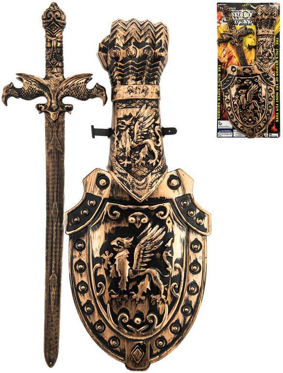 Rytířská souprava dětský meč 48cm se štítem a rukavicí zdobený plast na kartě