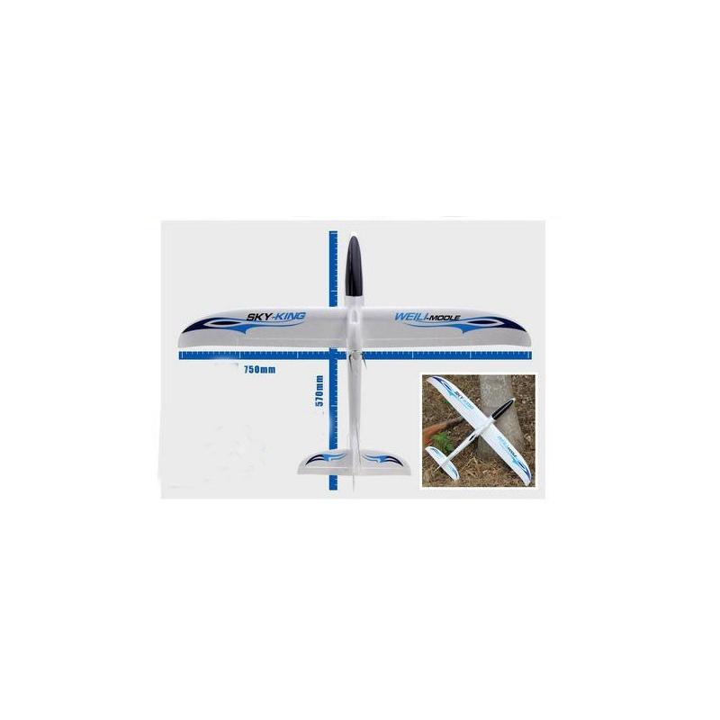 Elektrovětroň pro začátečníky Sky-King s rozpětím 750mm, vyrobený z odolného EEP a se sklopnou vrtulí pro klouzavý let. RTF kompletní sada. Barva modrá.Elektrovětroň Sky-King je již mnoho let oblíbeným modelem u začínajících pilotů. Dokonalá aerodynamika a klouzavost společně se silným 60z. motorem umožňuje i začátečníkům rychle se naučit skvělé manévry na obloze.