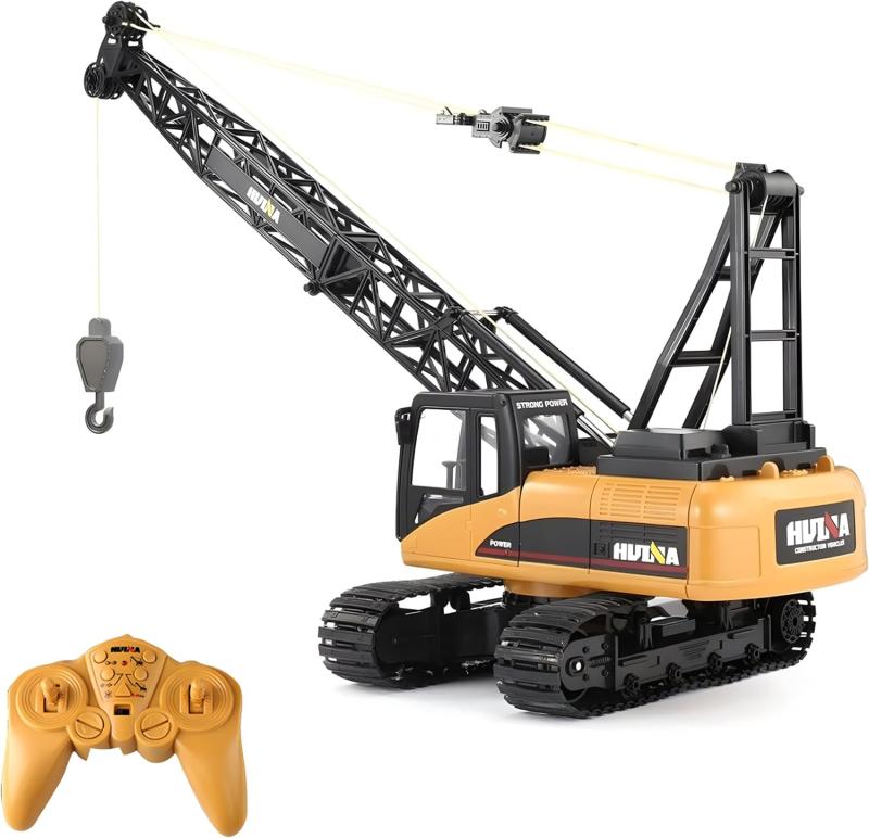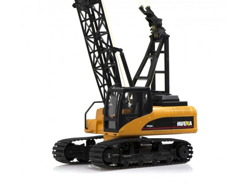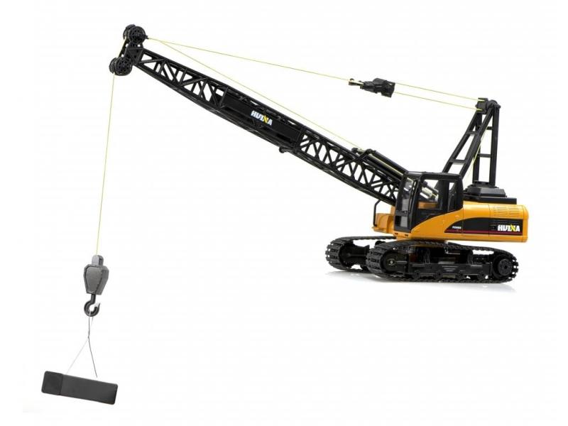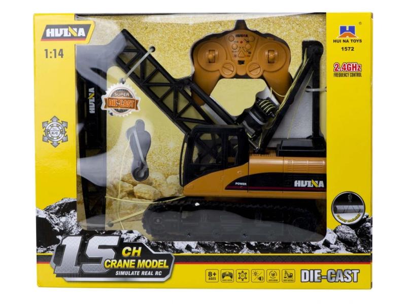 Skvělý pásový jeřáb v měřítku 1:14. Vysoce kvalitní jeřáb s pevným kovovým hákem. Plně vybavený mnoha funkcemi. Praktické dálkové ovládání 2,4 GHz, gumové pásy, realistické zvuky, akumulátor NiMH 7,2V. Tento jeřáb je skutečným pomocníkem a pracantem na každé stavbě!