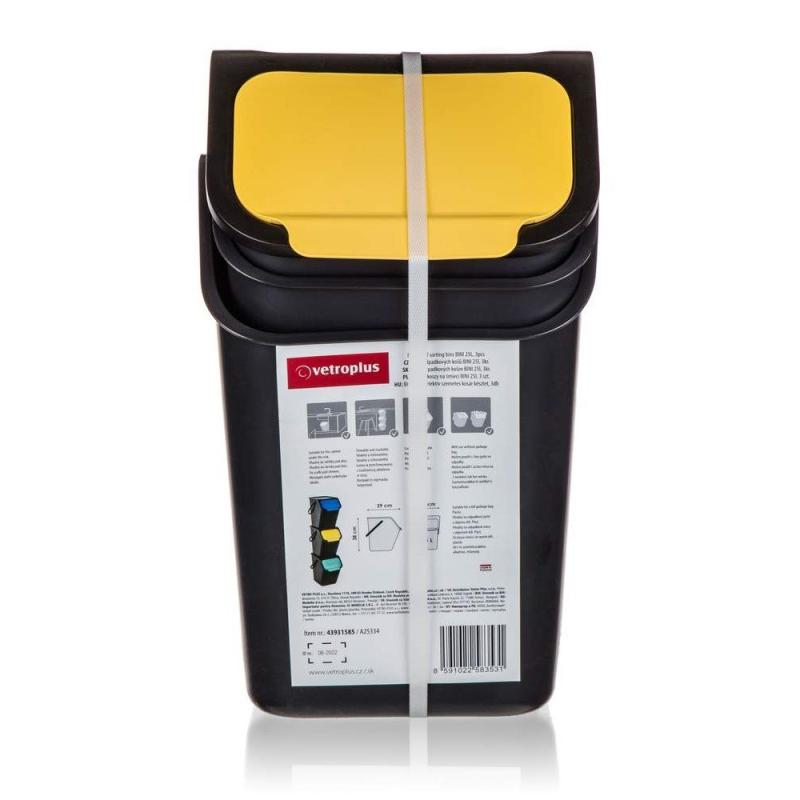 Sada VETRO-PLUS odpadkových košů na tříděný odpad BINI 25 l, 3 ks