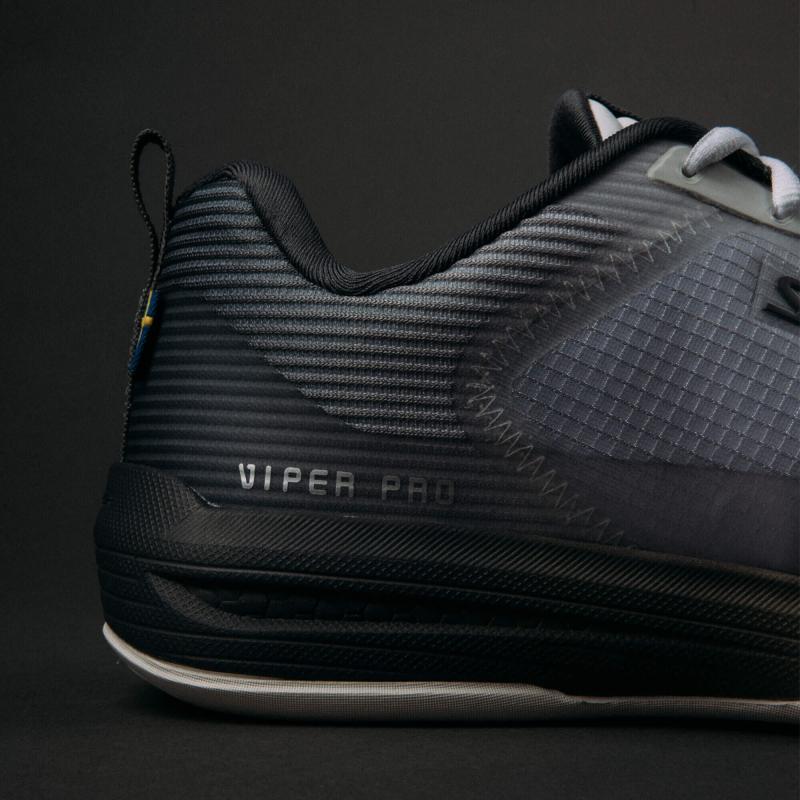Svršek je tvořen technologií ViperSKIN 2.0™, která kombinuje tři vrstvy materiálů: jemnou síťovinu pro komfort, vrstvu Exo-skeleton pro pevnou stabilizaci nohy při prudkých pohybech a lehký, prodyšný nylon zajišťující odolnost a celkovou pevnost. Jazyk boty je pružně připevněn ke svršku a polstrován, což snižuje tlak na nárt i při pevnějším šněrování. Patní košíček Salming HeelCup™ stabilizuje chodidlo a chrání Achillovu šlachu díky anatomickému tvaru a mírně vyššímu provedení.