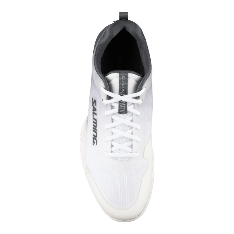 Zvršok je tvorený technológiou ViperSKIN 2.0™, ktorá kombinuje tri vrstvy materiálov: jemnú sieťovinu pre komfort, vrstvu Exo-skeleton pre pevnú stabilizáciu nohy pri prudkých pohyboch a ľahký, priedušný nylon zaisťujúci odolnosť a celkovú pevnosť. Jazyk topánky je pružne pripevnený ku zvršku a polstrovaný, čo znižuje tlak na nárt aj pri pevnejšom šnurovaní. Pätný košík Salming HeelCup™ stabilizuje chodidlo a chráni Achillovu šľachu vďaka anatomickému tvaru a mierne vyššiemu prevedeniu.