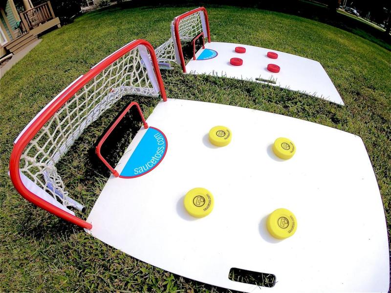 So sadou Sauce Toss si užijete veľa zábavy a ešte vylepšíte svoje hokejové zručnosti. Predovšetkým žabičky, ktoré využijete pri presných prihrávkach na hokejky Vašich spoluhráčov.Ideálna hra na zlepšenie hokejových zručností, či už na záhradnej akcii s grilom alebo oddychu pri bazéne či na pláži.