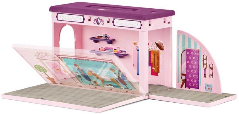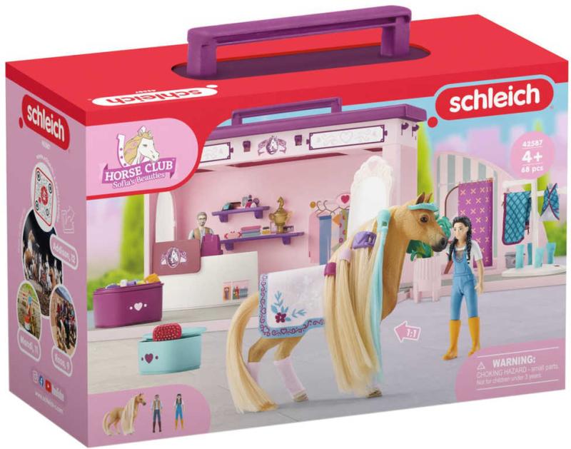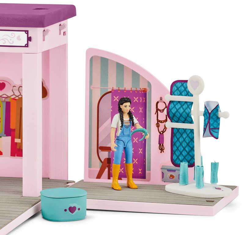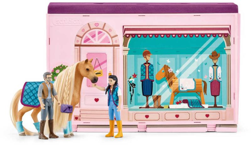 V mobilním butiku z kolekce Schleich HORSE CLUB Sofia's Beauties najdeš skvělé deky a doplňky v mnoha různých barvách, takže si každý kůň najde to své. Víš, že hřívy a ocasy můžeš nejen zaplétat a upravovat, ale také vyměňovat? Sofia a její klisna se tak nemusí držet jen jednoho účesu. Ideální pro každé focení. I když se odehrává na hřišti za domem. Celý butik můžeš snadno sbalit a vzít s sebou.