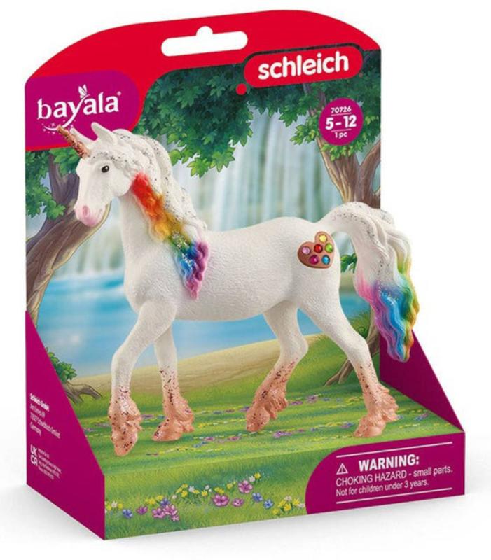 SCHLEICH Koník Bayala jednorožec - kobyla srdíčková duhová, figurka ručně malovaná, realistický vzhled, velikost kůň 13cm.Naše duhová klisna jednorožce ze světa Schleich bayala má zálibu v toulkách. Se svým duhovým ohonem vnese barvu do každého prostředí: do hor i do koupele. Její roh mimochodem začne svítit, když narazí na něco pěkného. A po jejích kopytech zůstávají všude třpytivé stopy. Nikdy se tak nemůže ztratit.