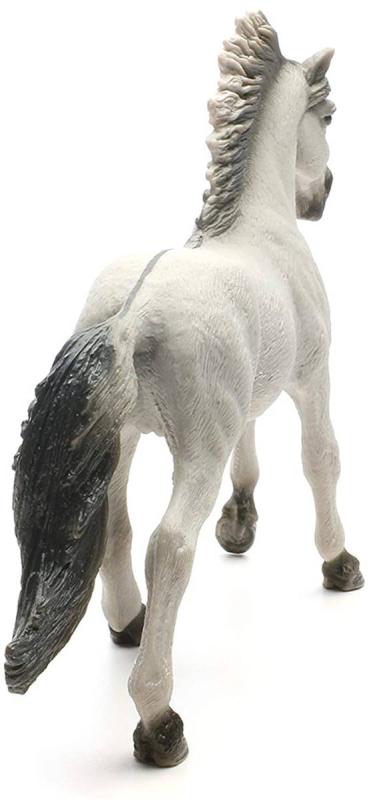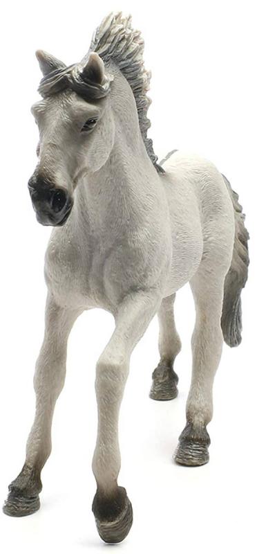 Hřebec Sorraia Mustang od Schleich® FARM WORLD má na zádech úzký hřbetní pruh. To je pro tyto koně charakteristické, stejně jako tmavá srst a tmavý čenich. Hříva a ocas ukazují další charakteristiku plemene: jsou vždy dvoubarevné! Koně Sorraia jsou považováni za předky Andalusianů a Lusitanosů. Právě jim tato plemena vděčí za vysoko nasazený a silný krk.