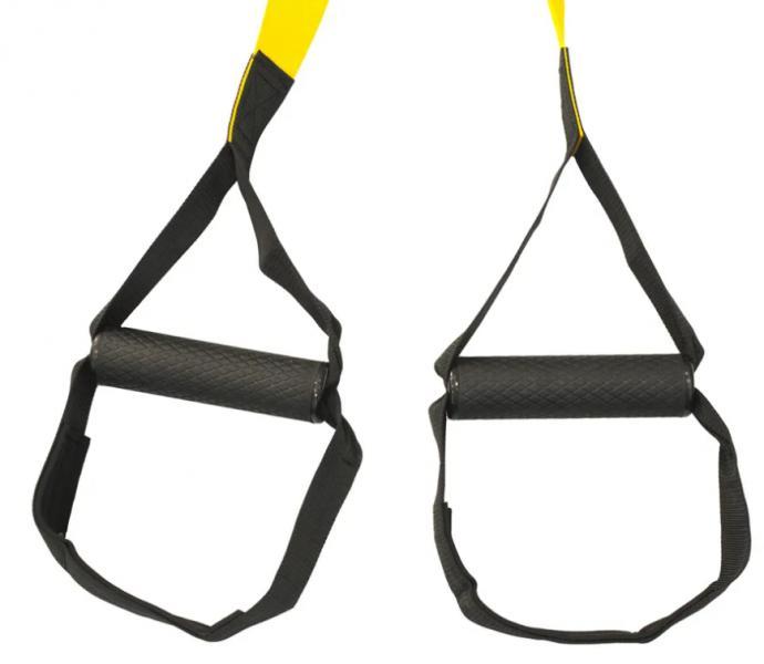 • Úchopy: pevné rukoväte na koncoch popruhov