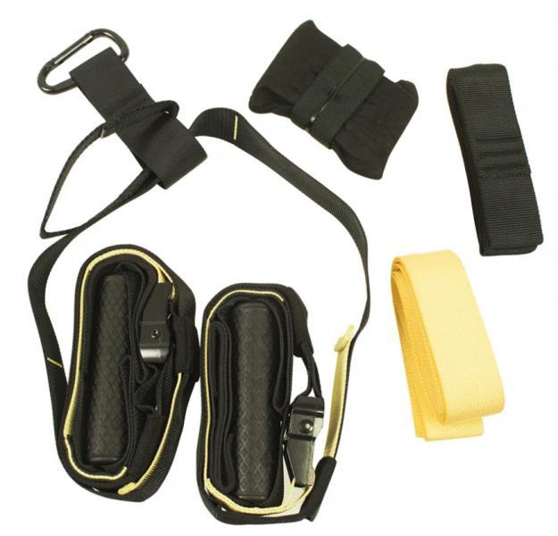 Tento závesný posilňovací systém umožňuje efektívne cvičenie s vlastnou telesnou hmotnosťou, ktoré posilňuje všetky hlavné svalové skupiny. Popruhy sú navrhnuté tak, aby ich bolo možné jednoducho pripevniť do dverí alebo k inému pevnému opornému bodu, čo uľahčuje inštaláciu a umožňuje trénovať prakticky kdekoľvek. Konce popruhov sú vybavené pohodlnými rukoväťami, ktoré zabezpečujú bezpečný a pevný úchop počas cvičenia.