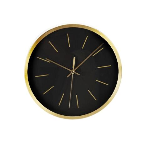 Tyto nástěnné hodiny zaujmou kombinací černého ciferníku a zlatého kovového rámu, který dodává elegantní a moderní vzhled. Hodiny nemají číslice, pouze jednoduché linky, díky čemuž působí minimalisticky a snadno zapadnou do různých typů interiérů, ať už jde o kuchyň, obývací pokoj, kancelář, školu nebo chodbu.