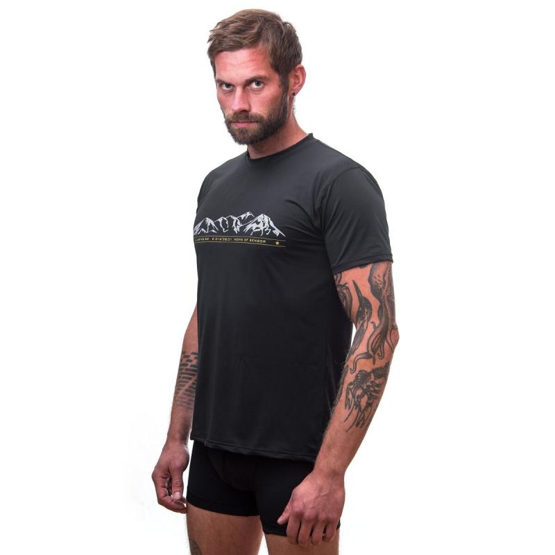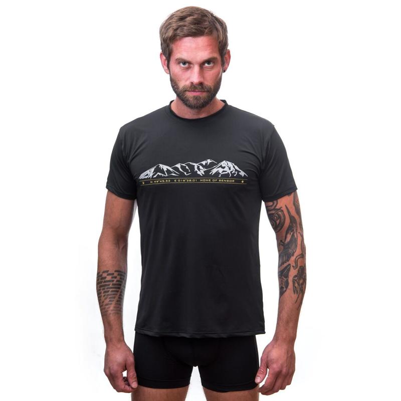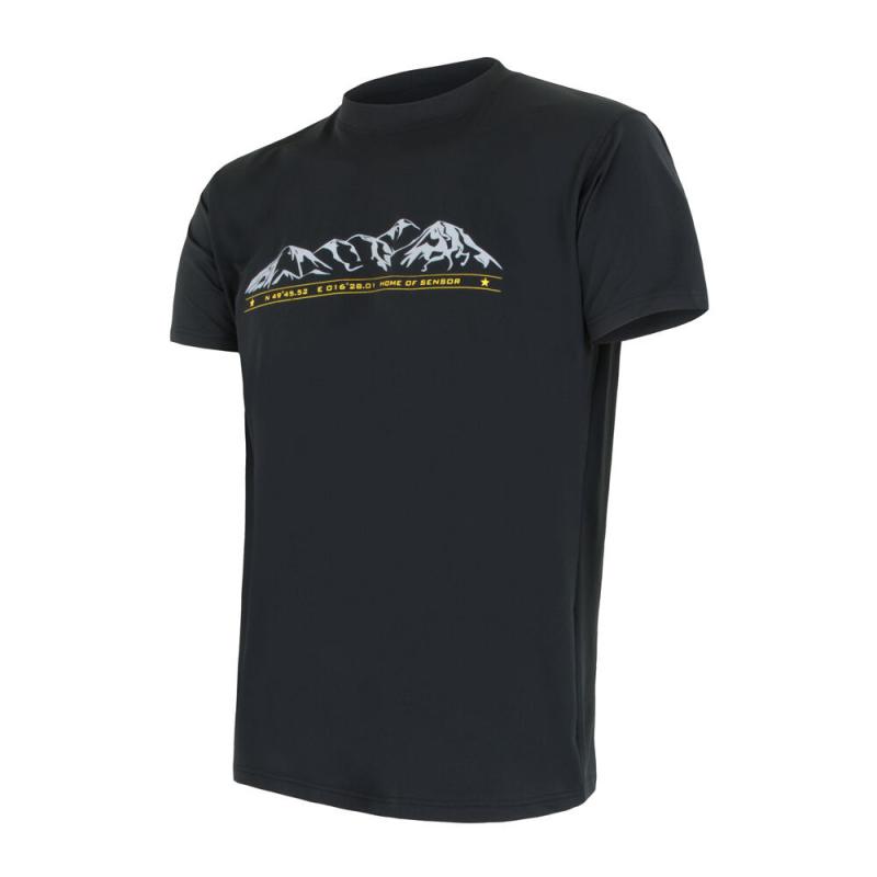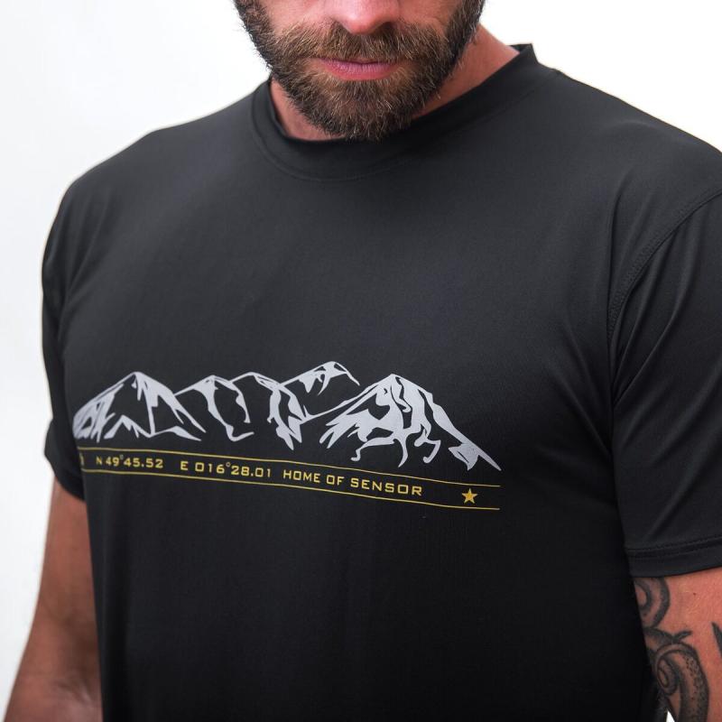 SENSOR Coolmax Tech Mountains Limited pánské černé triko kr.rukáv
