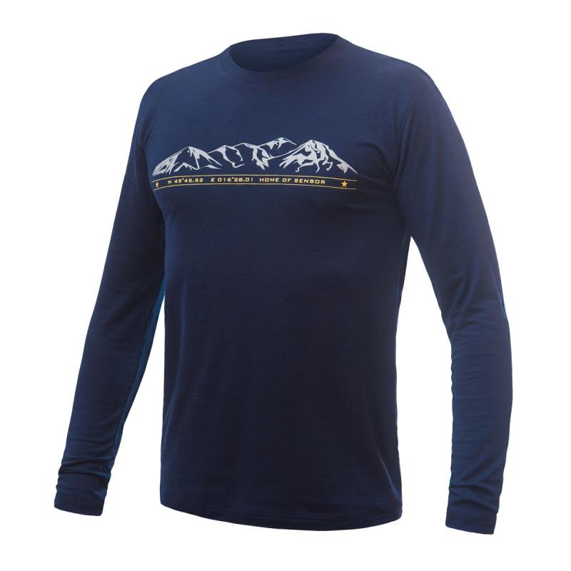 SENSOR Merino Active Mountains pánské triko dl. rukáv Deep Blue