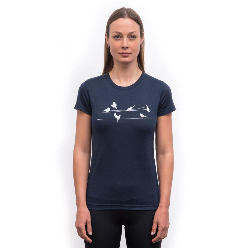 SENSOR Merino Active Songbirds dámske tričko kr. rukáv Deep Blue