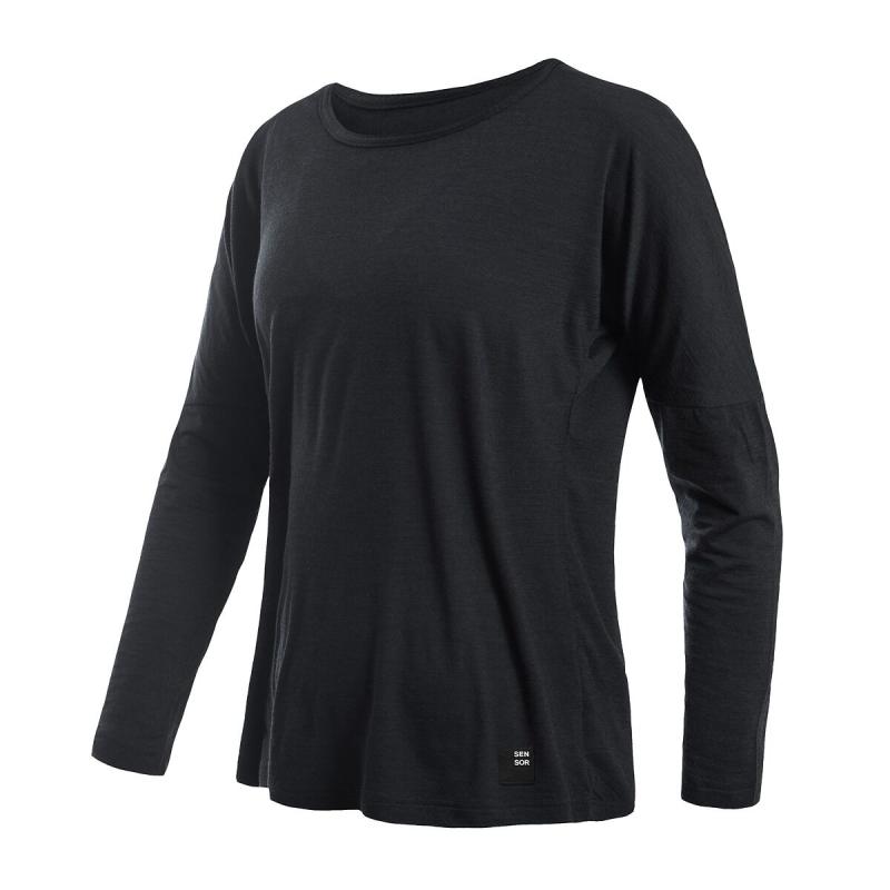 SENSOR Merino Air Traveller dámské černé triko dl.rukáv
