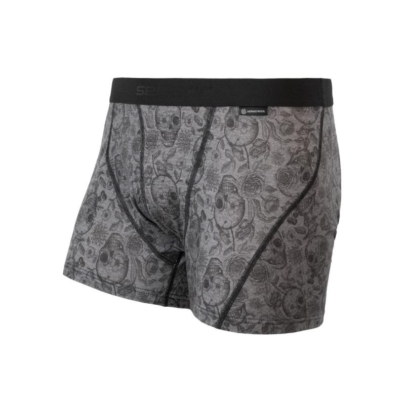 Sensor Merino Impress Pánské Trenky Černá/skulls
