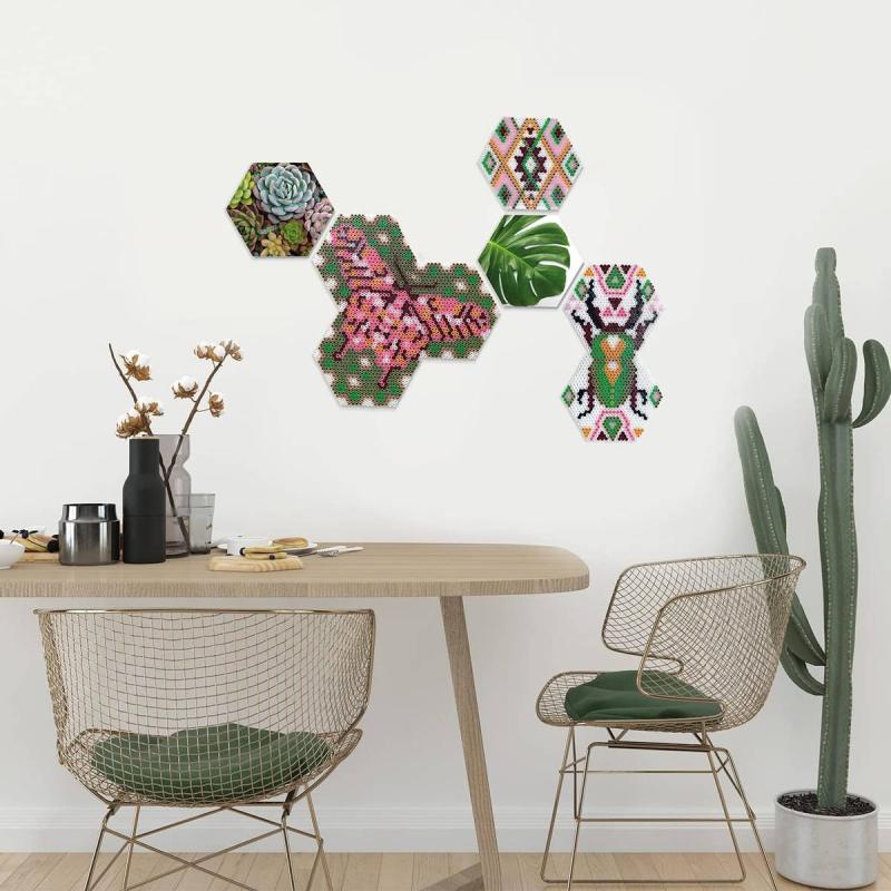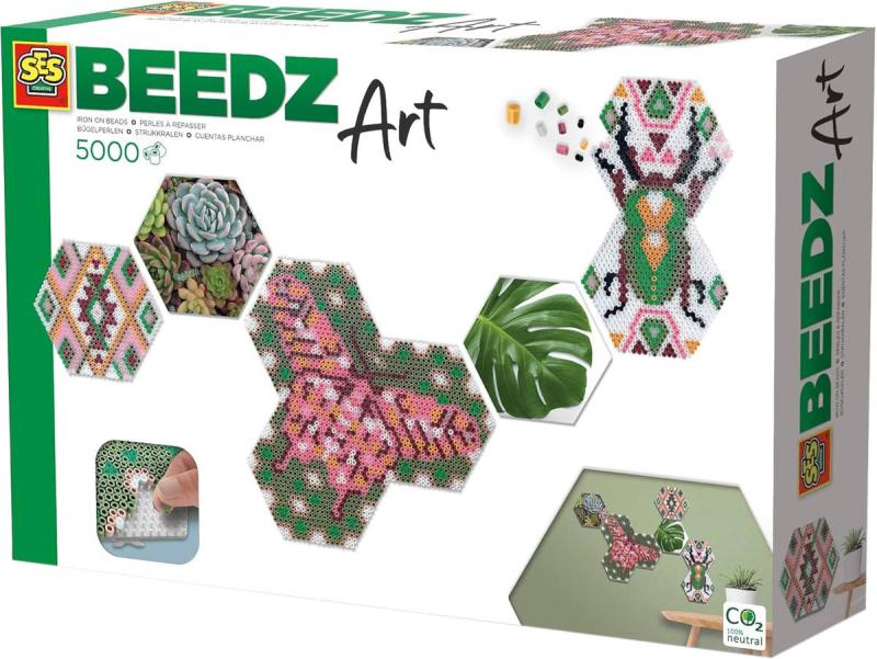 Sada Beedz Art – Hexagonální destičky s botanickým motivem od SES Creative vám umožní vytvořit si vlastní moderní a elegantní mozaikovou nástěnnou dekoraci ze zažehlovacích korálků. Tato kreativní výzva je ideální pro starší děti a dospělé, kteří hledají relaxační a kreativní činnost s působivým výsledkem.Koláž se skládá z několika šestihranných dlaždic, které můžete na stěně uspořádat podle vlastního vkusu. Motiv kombinuje zažehlovací korálky s fotografickým uměním pro jedinečný, současný vzhled.