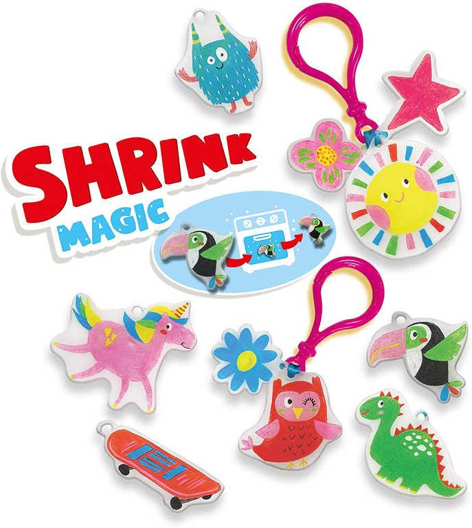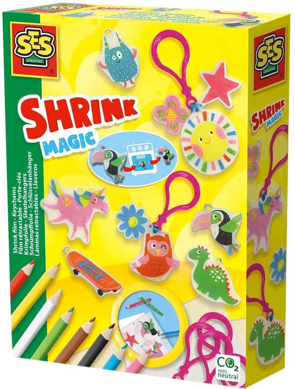 Balení obsahuje: 3 smršťovací fólie, 8 barevných pastelek, 6 plastových kroužků na klíče, barevnou stužku, návod