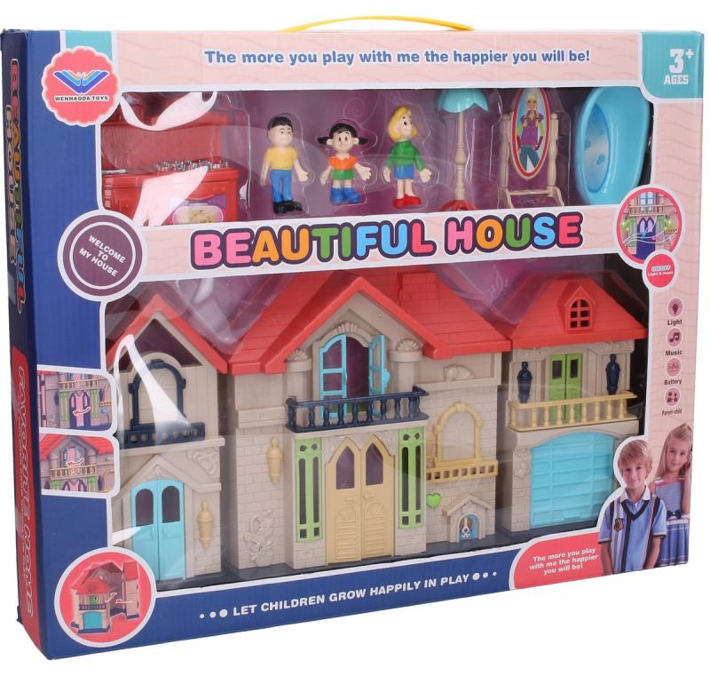 Obsah balení - domeček, 3 postavičky, nábytek.