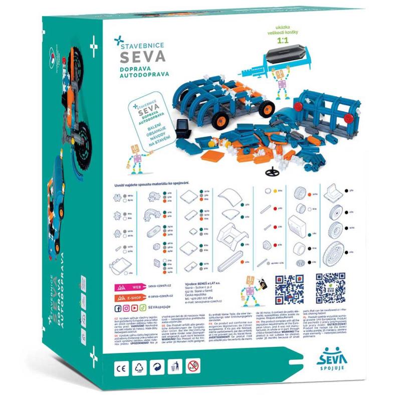 SEVA DOPRAVA - Autodoprava obsahuje 743 dílů. Pokud chcete ze SEVY stavět auta všech typů a velikostí, tak toto balení je určeno pro Vás. Stavebnice SEVA DOPRAVA - Autodoprava Vám přinese pořádnou dávku všech možných vozidel, auťáků, bagrů, motorek a trucků. Součástí balení je návod, který je nadupaný velkým množstvím předloh.