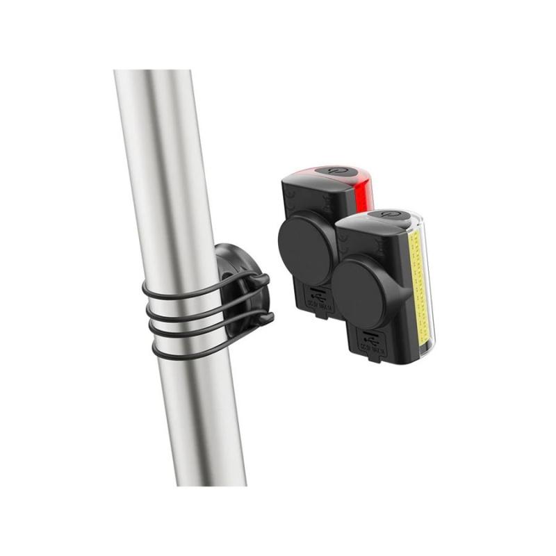 Tato výhodná sada obsahuje dvě magnetická světla určená pro jízdní kola, která se snadno připevňují pomocí gumiček a díky magnetickému držáku je můžete rychle sundat a vzít s sebou. Obě světla nabízejí širokou viditelnost v úhlu 270°, což výrazně zvyšuje vaši bezpečnost na silnici. Přední světlo disponuje výkonem 160 lumenů, zadní pak 40 lumenů, což zajistí, že budete dobře vidět i za zhoršených světelných podmínek.
