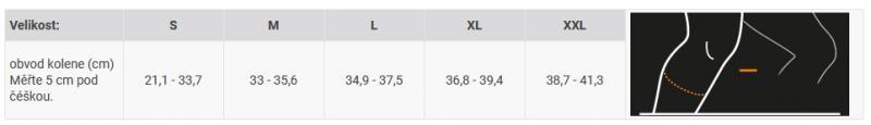 Tabulka velikostí - Obvod kolene měřte 5 cm pod čéškou.