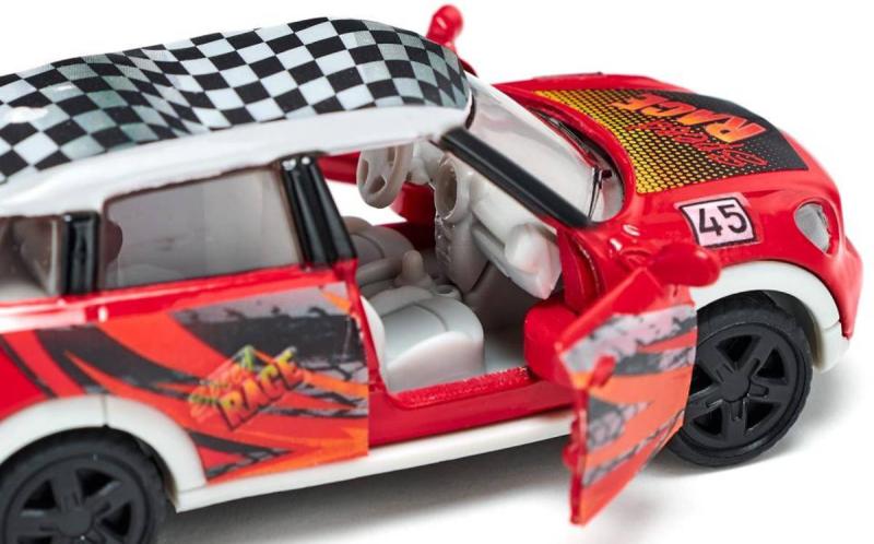 LIMITOVANÁ EDICE – SIKU Super - 100 let Sieper – Mini Countryman Race červený. Zábava začíná už při vybalování. V několika krocích jednoduše sestavíte z jednotlivých dílků červený Mini Countryman. A nyní je čas na zdobení karoserie pomocí samolepek (44ks). Pruhy, plameny nebo startovní číslo? Jakmile mají samolepky své správné místo, závod může začít.