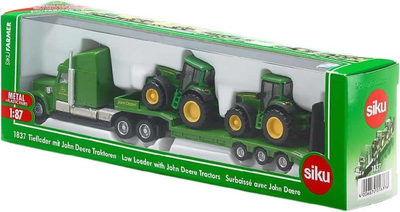 Siku Farmer tahač 1:87 set s podvalníkem a 2 traktory John Deere model 1837