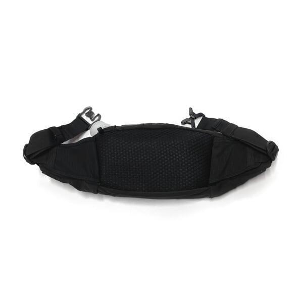 Jako hlavní materiál je použit měkký nylon s ripstop úpravou, zadní část z prodyšné síťoviny dobře odvádí pot. Aby byly vždy po ruce gely, tyčinky… jsou zde tři síťované kapsy, dvě boční a jedna čelní přístupná ze stran, pod ní se nachází další kapsa na zip např. pro uložení telefonu. V hlavní úložné části najdeme zipovou kapsu pro uložení baterie čelovky, její součástí je háček na klíče. Pro láhev 1,2l je určena zaizolovaná přihrádka, ta je rozměrově uzpůsobena pro možné uložení podélného hydratačního vaku HydraPack 1,5l (není součástí) s vývodem hadice na obě strany.