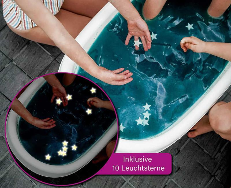 Tento kouzelný prášek Glibbi přemění vodu na galaktický sliz a hvězdičky, které jsou také součástí balení, navíc ve tmě svítí. Zábavné koupání může začít! Jedno balení vytvoří až 40 litrů slizu. Glibbi Galaxy je báječné potěšení pro Vaše děti. Zabaví se při
