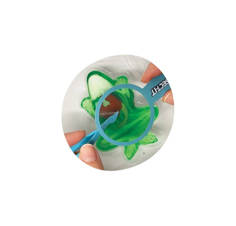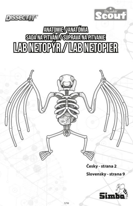 Malá laboratoř pro pitvu žáby, mloka či netopýra, jejichž kosti a orgány jsou pokryty slizem. Součástí je lupa a pinzeta a sáček s práškem pro vytvoření opětovného slizu: Po dokončení první pitvy vložte orgány a kostru zpět do blistru, promíchejte prášek s vodou, zalijte vzniklým slizem a nechte ztuhnout v chladu. Pitvu pak lze provést podruhé. Velikost 8 cm.