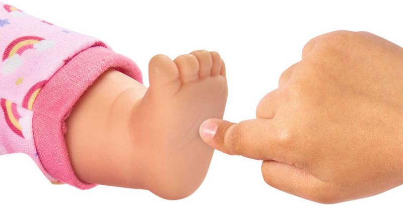 růžovou čepicí. Díky měkkému tělíčku je panenka lehká a pohodlná pro malé dětské ruce. Když ji polechtáte na noze, Laura se zasměje. Pokud chce Laura spát, uložte ji, dejte jí dudlík, Laura zavře oči a