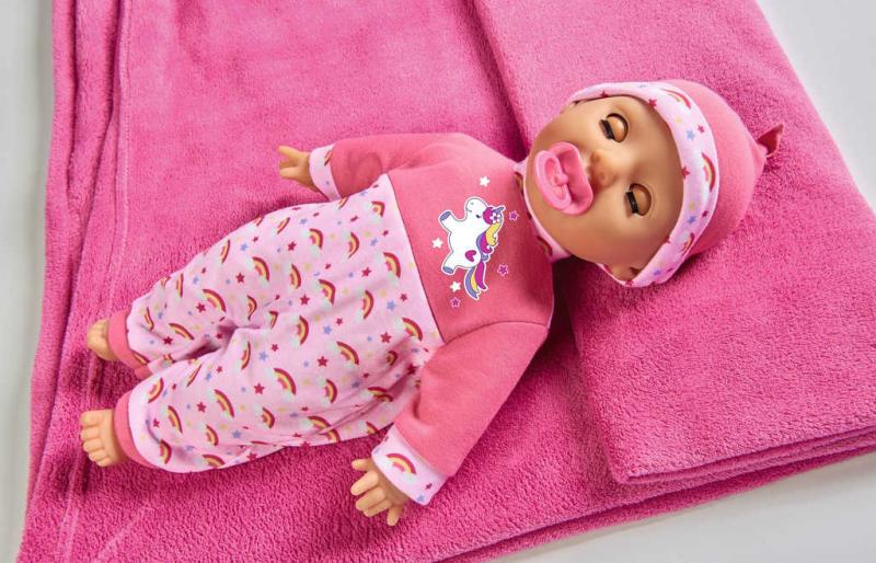 Panenka s měkkým tělíčkem, s 25 dětskými zvuky jako "mama", "baba", "hihi" a mnoha dalšími, s dudlíkem, mrkacíma očima. Laura je oblečená v růžové kombinéze zdobené malými duhami, s růžovou čepicí. Díky měkkému tělíčku je panenka lehká a pohodlná pro malé dětské ruce. Když ji polechtáte na noze, Laura se zasměje. Pokud chce Laura spát, uložte ji, dejte jí dudlík, Laura zavře oči a