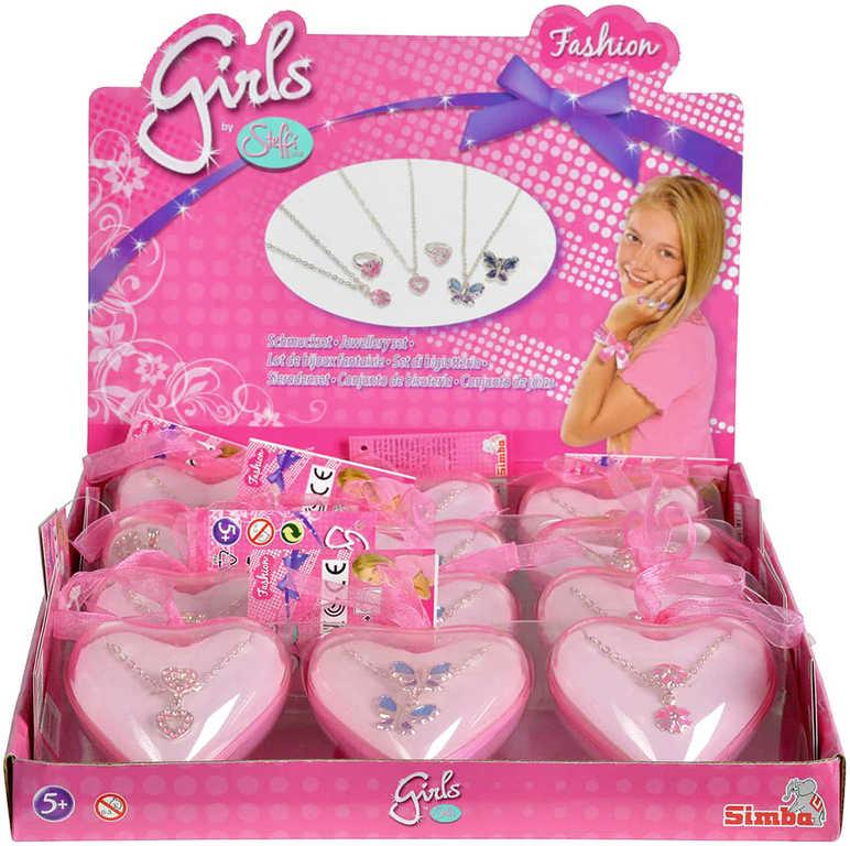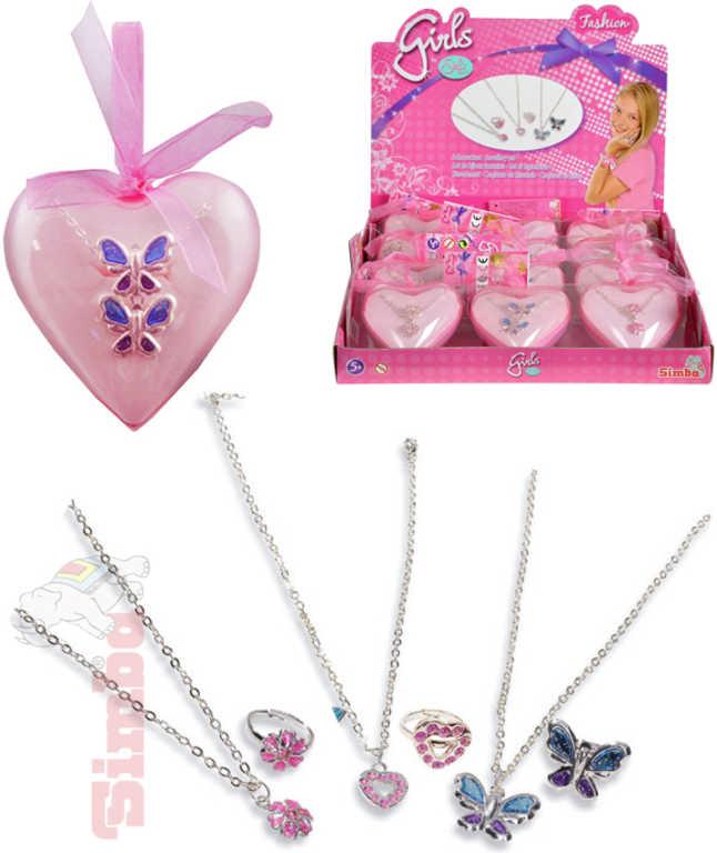 Simba Set prstýnek + náhrdelník dětská bižuterie v doze srdíčko plast různé druhy