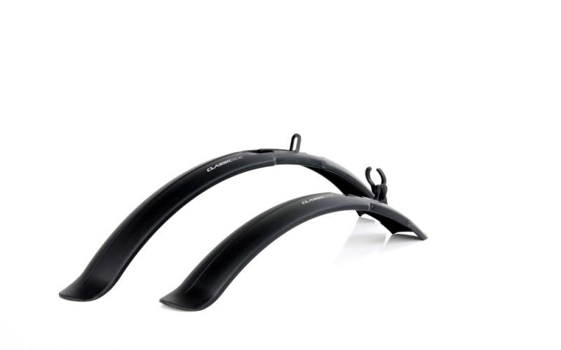 Klasická sada blatníkov pre horské bicykle, vhodná pre bicykle 24 aj 26". Blatníky boli prispôsobené pre inštaláciu s brzdami typu V-Brake. Oceľové upevňovacie úchyty umožňujú horizontálne aj vertikálne nastavenie