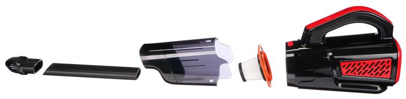Elegantní bezdrátový vysavač do auta CAR VAC 1 je skvělým pomocníkem každého řidiče. Tento kompaktní a lehký ruční vysavač vám ve vozidle zabere minimum místa, ale díky vysokému sacímu výkonu 10 KPa odvede mnoho práce. Prachová nádobka o objemu 350 ml je vyrobena z plastu, takže po naplnění jen vyjmete HEPA filtr, nádobku vysypete a v případě potřeby ji snadno opláchnete. Vysavač disponuje dvěma sacími rychlostmi, při nižší rychlosti budete moct na jedno nabití vysávat cca 25 - 30 minut a při vyšší rychlosti cca 15 - 20 minut. Součástí balení jsou také všestranné nástavce, díky kterým se dostanete do všech zákoutí vašeho auta. Vysavač i s príslušenstvím pohodlně uložíte do přenosné textilní brašny na zip, která je také součástí balení. Použití vysavače CAR VAC však není omezeno pouze na automobily, své využití najde i v karavanu, kanceláři, domácnosti, dílně nebo při cestování.