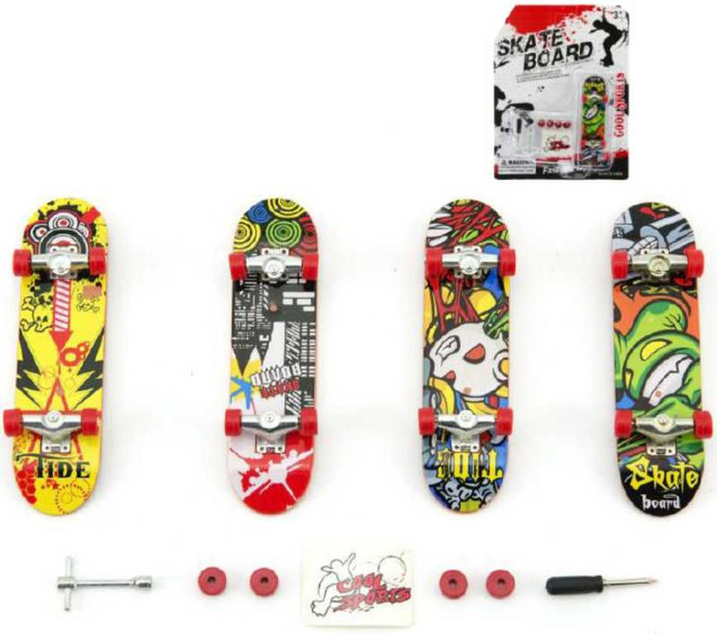 Skateboard psrtový 10cm set s nástroji k sestavení různé druhy na kartě plast
