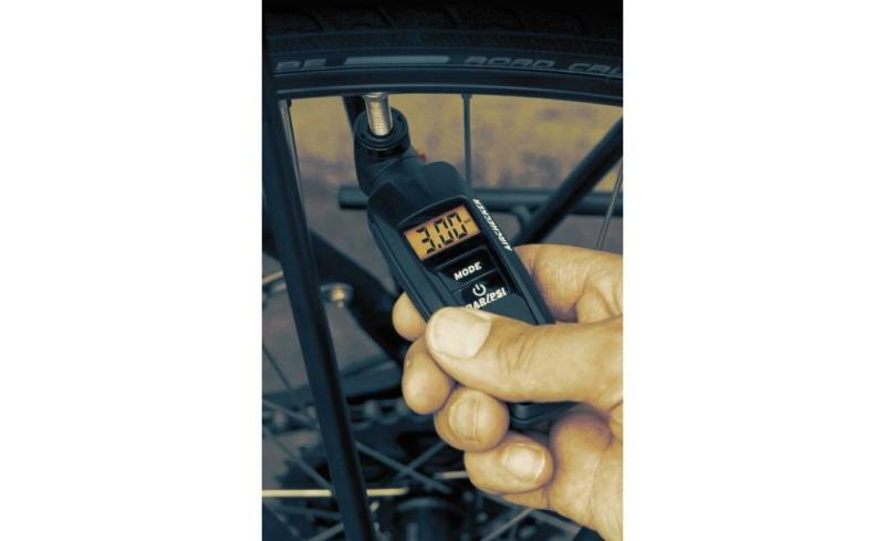 Digitálny tlakomer SKS na meranie tlaku, vhodný pre všetky typy ventilkov. Zaujímavá vychytávka je podsvietenie displeja.Otočná duálna hlava na auto i galuskový ventilok