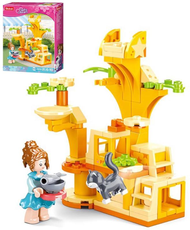SLUBAN Girls Dream (M38-B0970D) Cvičiště pro kočky. Kvalitní plastová stavebnice. Lze kombinovat s většinou ostatních známých stavebnic. Součástí 1 figurka.Cvičiště pro kočičky je v krásně zářivé, žluté barvě se schůdky a stupínky. Součástí je kromě zvířátka také figurka cvičitelky, která má pro kočičku po výcviku připravenou odměnu v podobě ryby na misce. Stavebnice ze série Sluban Girls Dream pro holky obsahuje 81 dílků, figurku, kočičku, nálepky a tištěný návod.