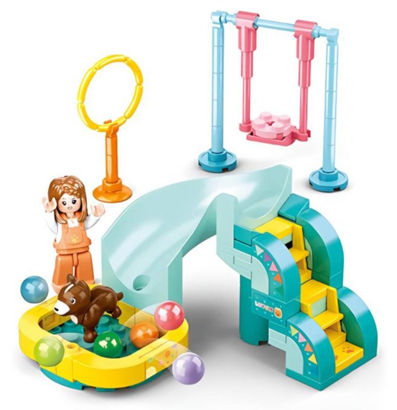 SLUBAN Girls Dream (M38-B0970E) Hřiště pro pejsky. Kvalitní plastová stavebnice. Lze kombinovat s většinou ostatních známých stavebnic. Součástí 1 figurka.Stavebnice Sluban je možno kombinovat s podobnými stavebnicemi mnoha dalších známých značek. Dílky jsou vyrobeny z certifikovaného nezávadného a odolného ABS plastu. Přesně do sebe zapadají a drží. Výrobce má svůj inovativní vývojový tým a budete překvapeni kvalitním zpracováním jak dílků, tak figurek. Zejména figurky jsou pýchou firmy Sluban. Mají realistický tvar, hlavičku i zápěstí na pohyblivém kloubu, v pase se otáčejí o 360° a nožičky jsou pohyblivé ve směru chůze a zároveň si zachovaly plnou kompatibilitu s kostičkami. Je to malá figurka s velkou budoucností.