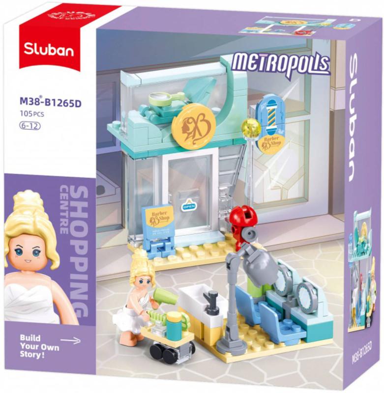 Stavebnice je určena pro děti od 6 let a skvěle doplní jejich obchodní centrum. Po sestavení představuje kadeřnictví o délce 8,7cm a obsahuje figurku kadeřnice. Kadeřnictví má moderní vzhled a je vybaveno dvěma křesly se zrcadly, která poskytují realistický zážitek z kadeřnického sálu. Součástí balení jsou také různé kadeřnické nástroje, které umožňují dětem hrát si na kadeřníky a vytvářet různé účesy. Tato stavebnice může být kombinována s dalšími produkty Sluban, jako jsou M38-B1265A Květinářství, M38-B1265B Rychlé občerstvení a M38-B1265C Obchod s nápoji, což dětem umožňuje vytvořit si vlastní obchodní svět plný zábavy.