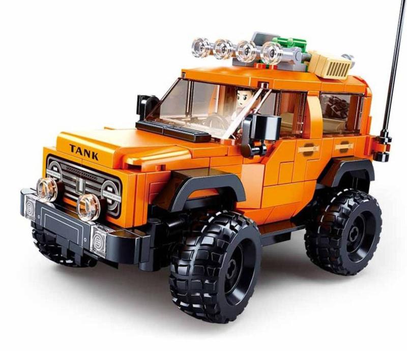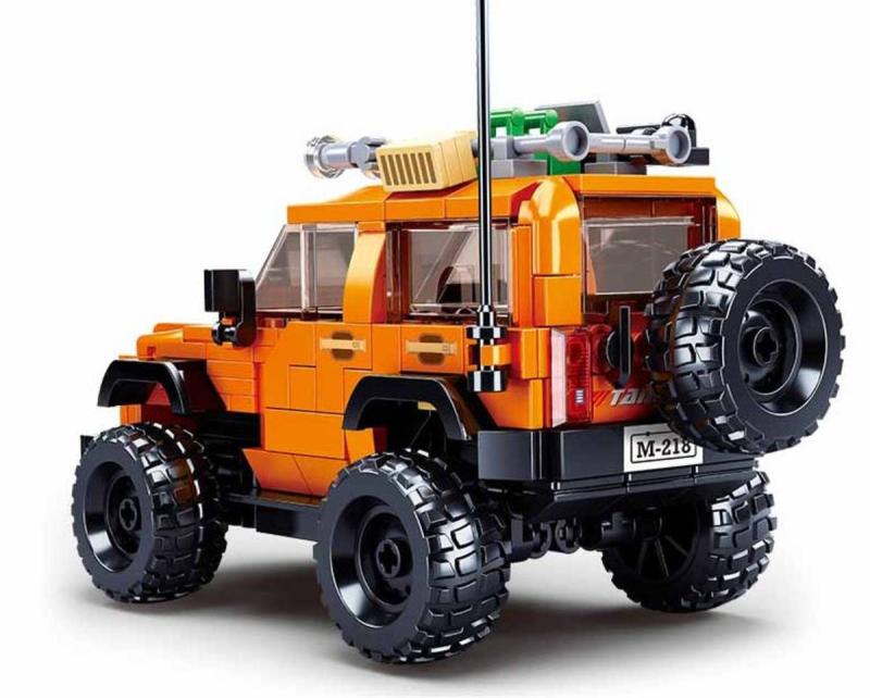 M38-B1013 Americký SUV vůz je stavebnice z kolekce Sluban Model Bricks. Terénní auto v oranžové barvě je po sestavení dlouhé téměř 16cm.