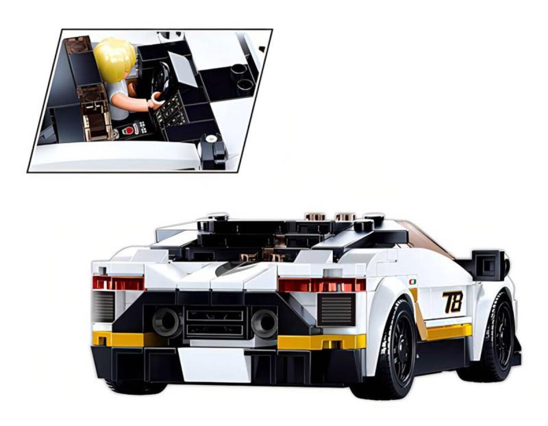 SLUBAN Model Bricks (M38-B0957) Auto italský bílý sportovní vůz. Model auta. Kvalitní plastová stavebnice. Lze kombinovat s většinou ostatních známých stavebnic. Součástí 2 figurky.Postav si stavebnici bílého modelu italského sporťáku. Tento vůz sestavíš z 276 dílků podle tištěného návodu krok za krokem. Po sestavení je dlouhý 16 cm a jeho součástí jsou i dvě figurky Sluban. Stavebnice Sluban pro malé i velké. Postav si svůj vlastní příběh!