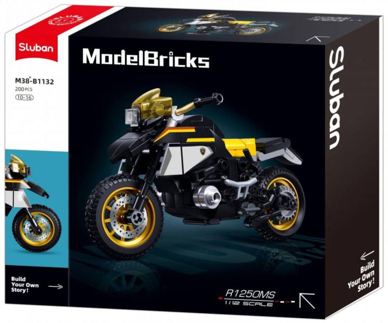Stavebnice Sluban Model Bricks M38-B1132 přináší model motorky R1250 GS v měřítku 1:12, který je jedním ze šesti nových modelů motorek od Sluban. Sestavený model se může pochlubit 200 dílky a po dokončení měří 15 cm na délku. Motorka zaujme svou černou barvou s žlutými prvky a věrně napodobuje tvar a design originálního stroje s obsahem motoru 1250cc. Malý podstavec, který je součástí balení, umožňuje pohodlné vystavení modelu a zvýraznění jeho dynamického vzhledu. Detailní zpracování modelu R1250 GS nabízí realistický zážitek z sestavování a je skvělým způsobem, jak přiblížit svět motocyklů mladým fanouškům i zkušeným sběratelům.