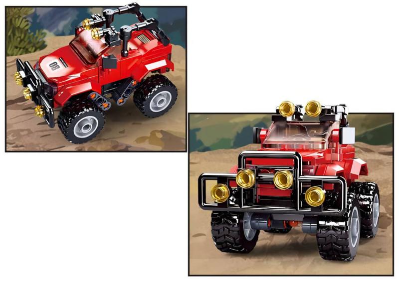 SLUBAN Town (M38-B0902) Červené SUV vozidlo džíp. Kvalitní plastová stavebnice. Lze kombinovat s většinou ostatních známých stavebnic. Součástí 1 figurka.Stavebnice červeného SUV vozu s odpružením ze série Sluban Town. SUV je po sestavení dlouhé 11cm. Stavebnice obsahuje 135 dílků, jednu figurku, nálepky a tištěný návod. Stavebnice Sluban pro malé i velké. Postav si svůj vlastní příběh!