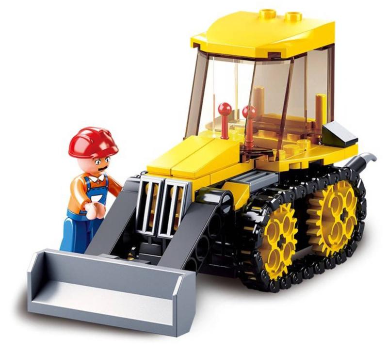 SLUBAN Town (M38-B0377D) Malý buldozer. Kvalitní plastová stavebnice. Lze kombinovat s většinou ostatních známých stavebnic. Součástí 1 figurka.Malý pásový buldozer pomocí velké radlice rozhrnuje a upravuje zeminu. Popřípadě je používán k demolici. Po sestavení je dlouhý 1cm.