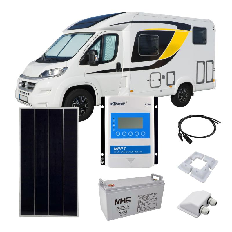 Solární set na karavan, součástí setu – monokrystalický solární panel s maximálním výkonem 180 W, solární regulátor Epever, kabely, držák, lepidlo, baterie, průchodka a dutinky.Vyrážíte na dovolenou či na vícedenní výlet v karavanu? Nechcete platit za elektrickou energii při kempování nebo se chystáte na místo, kde nemáte přístup ke zdroji? Pořiďte si solární set pro karavan a staňte se nezávislí na elektrické síti.