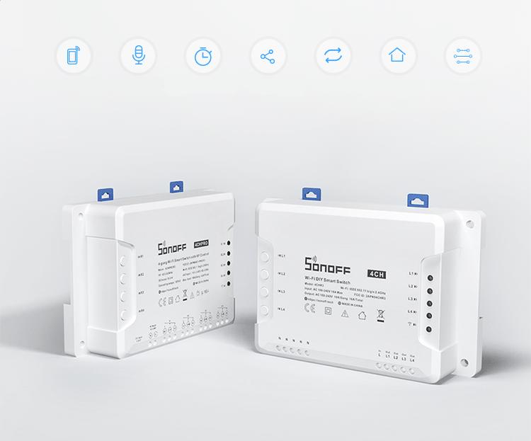 Uživatelé mohou připojená zařízení ovládat na dálku prostřednictvím bezplatné aplikace eWeLink dostupné na platformách iOS a Android nebo pomocí rádiového dálkového ovládání s frekvencí 433 MHz. Hlasová podpora a spolupráce s chytrými asistenty je možná také díky kompatibilitě s Amazon Alexa, Amazon Echo, Echo Dot, Amazon Tap, Google Assistant, Google Home, Google Nest, IFTTT.