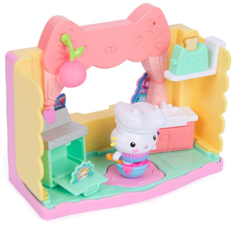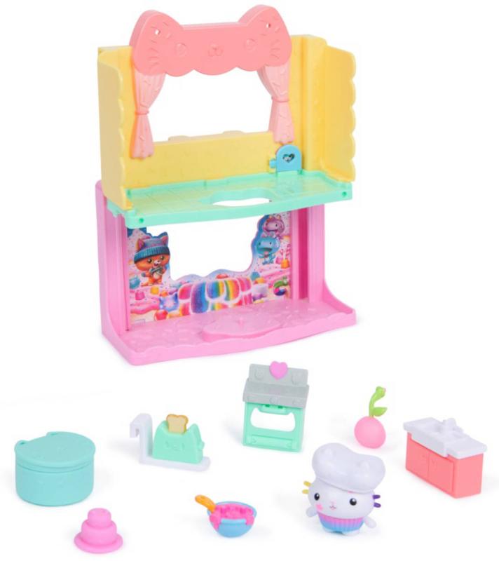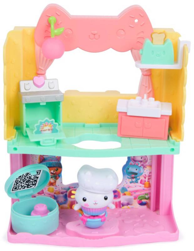 ***Úžasná dobrodružství čekají v Dortěnině dortové kuchyni! Tato 10dílná herní sada oživuje kouzlo filmu Gábinin kouzelný domek a obsahuje figurku Dortě a celkem 8 kusů nábytku a doplňků do domečku pro úžasná dobrodružství s těmito hravými vzdělávacími hračkami. Dortněnina kuchyň je navržena tak, aby se dala připojit k domečku, a promění se v dvoupatrovou místnost, která rozšiřuje svět Gábinina kouzelného domku o ještě víc napětí a zábavy – navíc s překvapivou funkcí! Umístěte Dortě na nasazovací podstavec, zatáhněte místnost dolů a sledujte, jak se teleportuje do své cukrové říše jako ve filmu! Rozbalte doručený balíček z domečku stejně jako Gábina a objevte překvapení – poté naskenujte QR kód a odemkněte bonus v aplikaci Gábinin kouzelný domek. Tato sada je skvělým způsobem, jak podnítit představivost a vybídnout děti k mňau-úžasným objevům s těmito roztomilými kočičími hračkami ze světa Gábiny.
