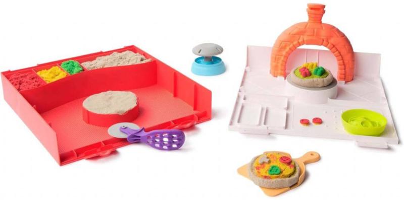 K dispozici je 5 tematických nástrojů , včetně razítek na polevy, tácu, trouby a speciálního kráječe na pizzu, který funguje také jako struhadlo na sýr. Největším lákadlem setu je možnost sledovat, jak písečná pizza "zvedá" a padá a vytváří tak skutečný zážitek z kuchyně.
