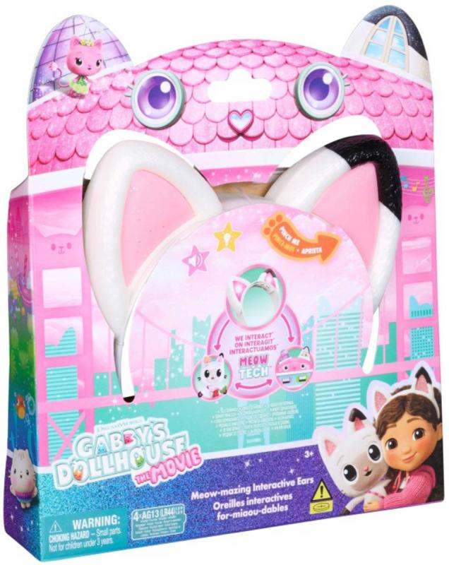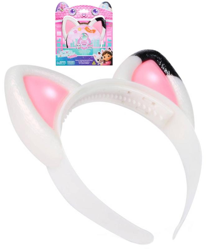 Úžasná dobrodružství začínají s interaktivní čelenkou – Gábininými úžasnými kočičími oušky! Tato 16,5 cm vysoká čelenka vypadá přesně jako Gábinina ikonická ouška a je jako stvořená pro vstup do jejího kouzelného světa. Čelenka má více než 20 zvukových efektů, světel a zvuků aktivovaných pohybem a inspiruje k nekonečnému hraní. Děti mohou zmáčknout levé nebo pravé ouško a přepínat mezi třemi zábavnými režimy: Taneční párty, režim Gábiny a Kočičí režim. Interaktivní ouška Gábiny navíc obsahují technologii Meow Tech – speciální funkci, která umožňuje propojení s interaktivním domečkem a interaktivní plyšovou Pandou Ťapkou pro ještě úžasnější propojenou hru!