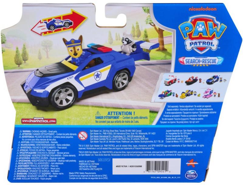 Přineste domů napínavý svět Tlapkové patroly se záchranářskou sadou Chase – Záchranný vůz! Tato akční sada obsahuje policejní auto o velikosti přibližně 15 cm se skutečně funkčními kolečky a dvě figurky, včetně Chase, který měří přes 5 cm, má na sobě svou ikonickou policejní uniformu a je připraven vyrazit do akce. Děti mohou Chase a Mývala usadit do vozidla, natáhnout ho dozadu a vypustit do akce pro pořádnou dávku dobrodružství.